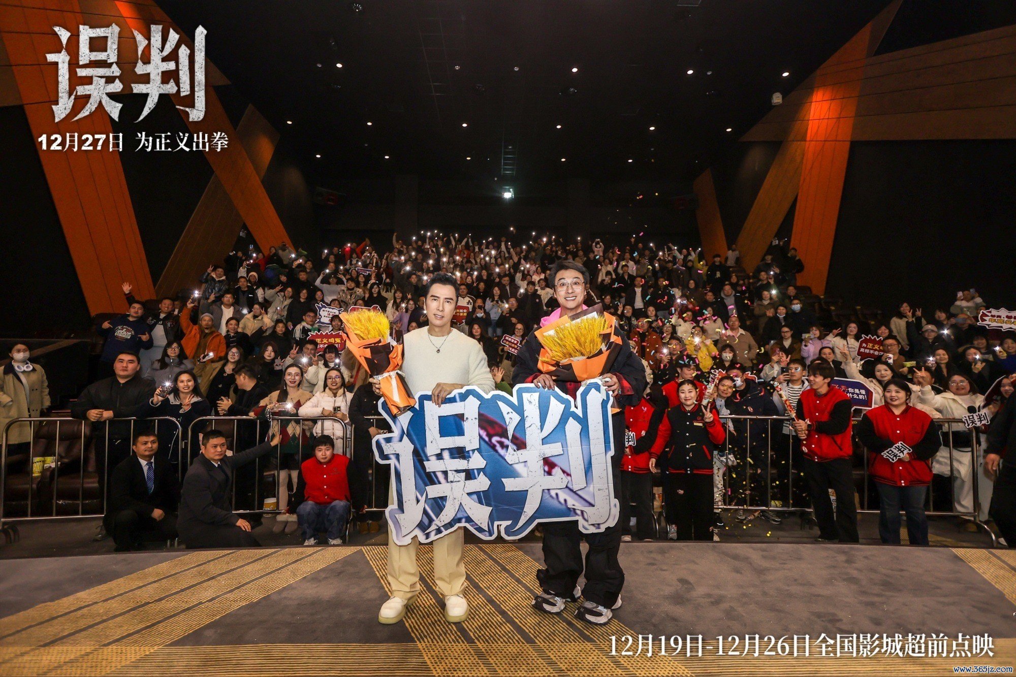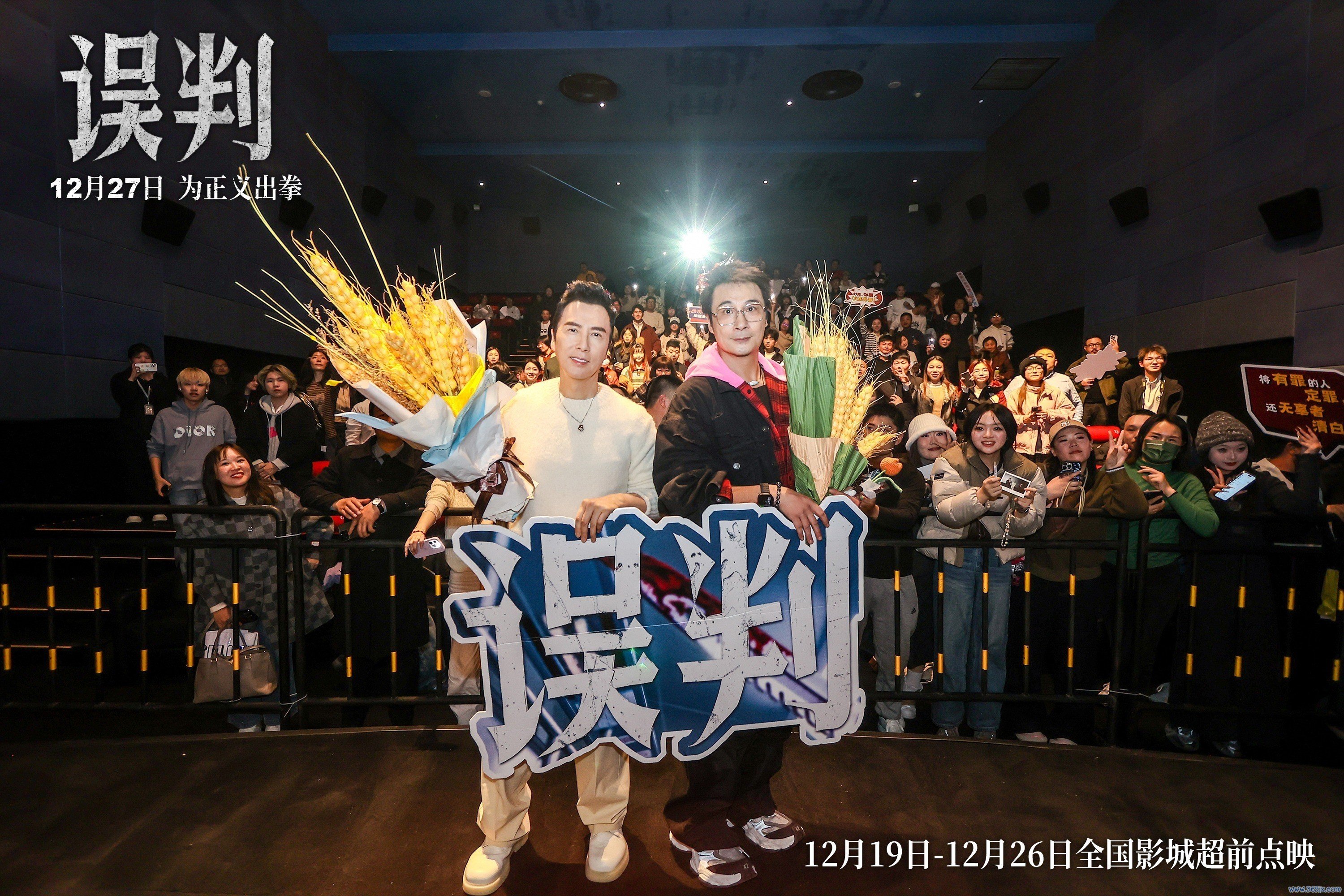 12月18日,贺岁档动作电影《误判》武汉站路演的第二天,身兼监制、导演、演员于零丁的甄子丹及领衔主演吴镇宇现身多家影城,与不雅众们进行关怀计划。不雅众给以影片“100分”的高度评价,更有不雅众称甄子丹在片中的推崇犹如“整顿职场”。影片将于12月27日世界上映,12月17日-12月26日世界超前点映,终了现时,影片点映及预售总票房破7300万。