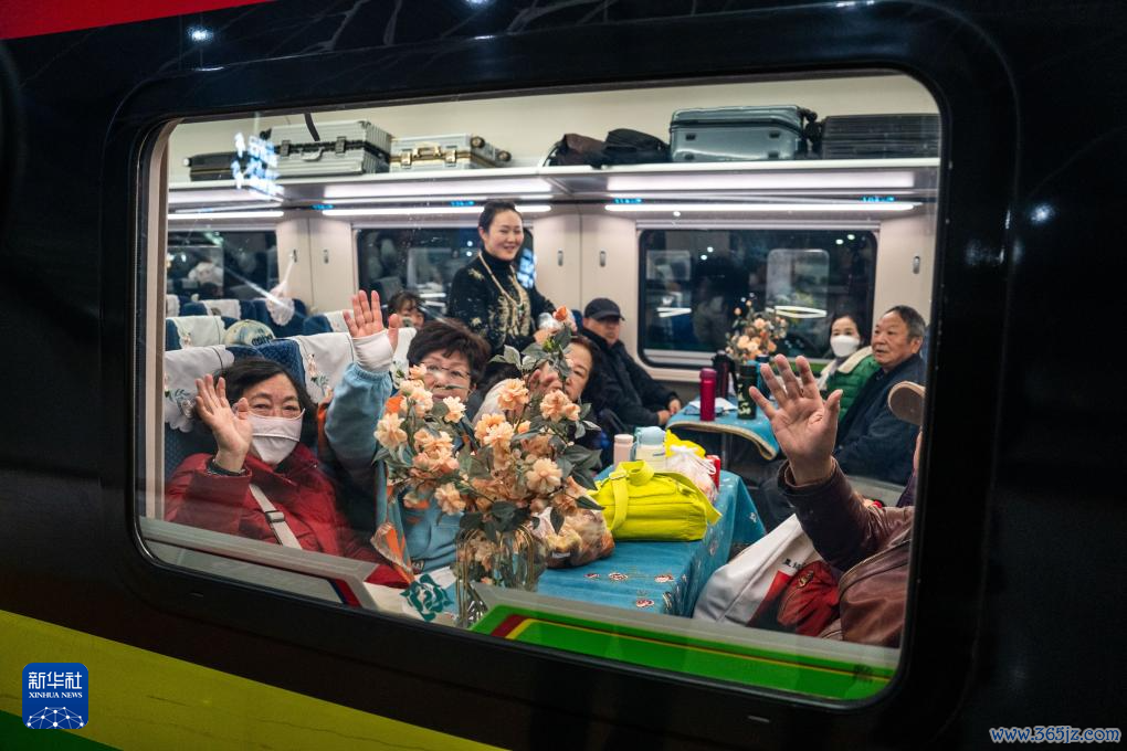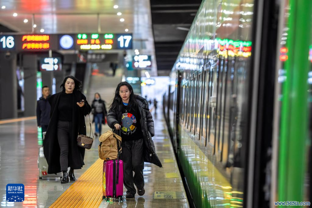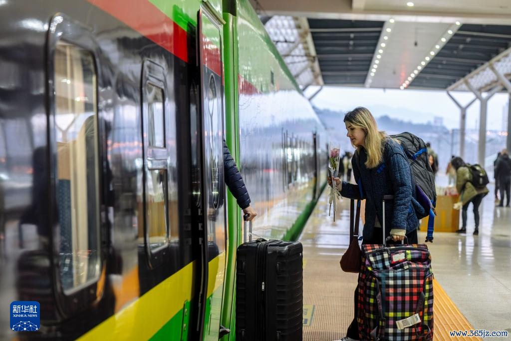 1月14日,乘坐D87次中老铁路国外游客列车的游客在昆明南站进站上车。