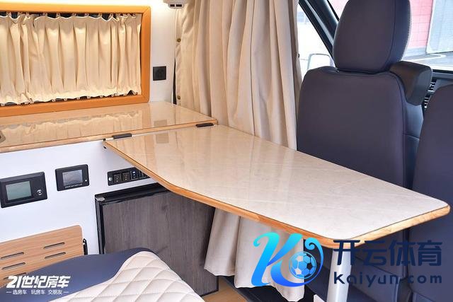 生涯区双东谈主汽车座椅,皮质软包,前3后2的布局,整车核载5东谈主。前哨一个尺寸较大的可拆卸餐桌,天气温度相宜的情况下可放在车外使用。
