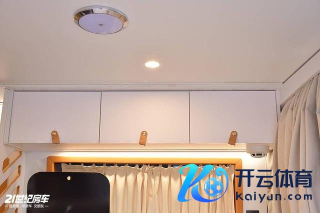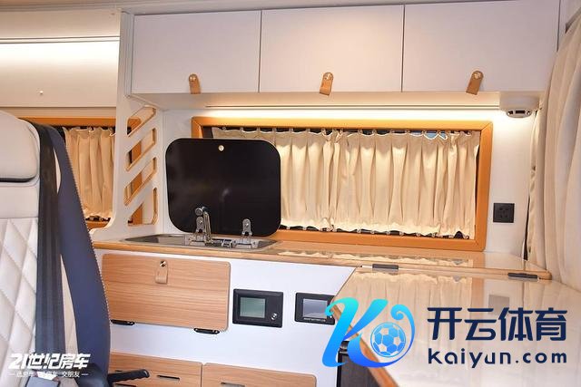 车辆里面合座保温隔热止震软包,以白色和原木色为主色彩,窗框也都作念了皮质软包,还有麂皮秘籍帘,柜门上皮质拉手,温馨酣畅有质感。